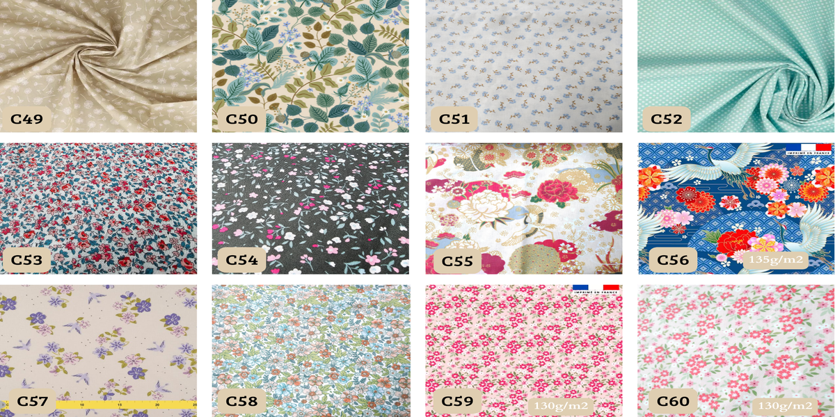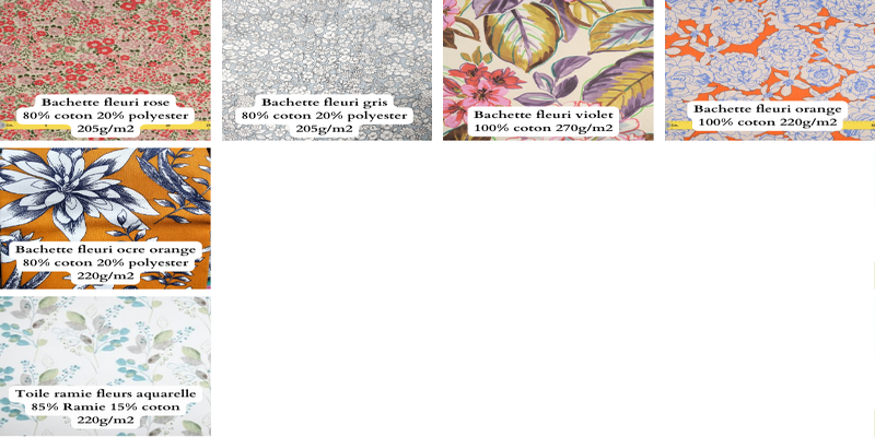 Vous pouvez consulter ce catalogue pour choisir le ou les tissu(s) que vous souhaitez utiliser pour votre commande personnalisée.