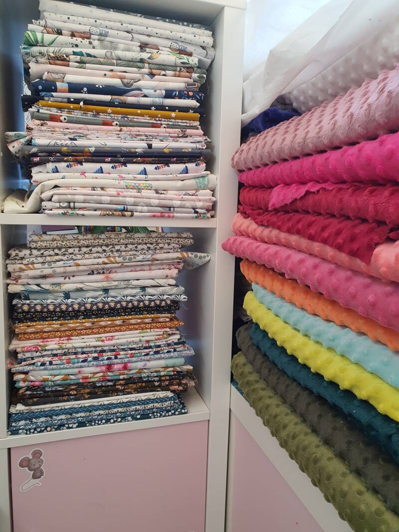 Ouvrez les portes de notre armoire pour découvrir l'ensemble des tissus que nous utilisons pour chacune de nos créations.