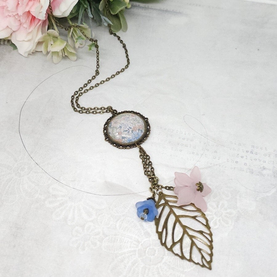 Sautoir avec cabochon en verre, Forme ronde, Modèle Fleurs de printemps