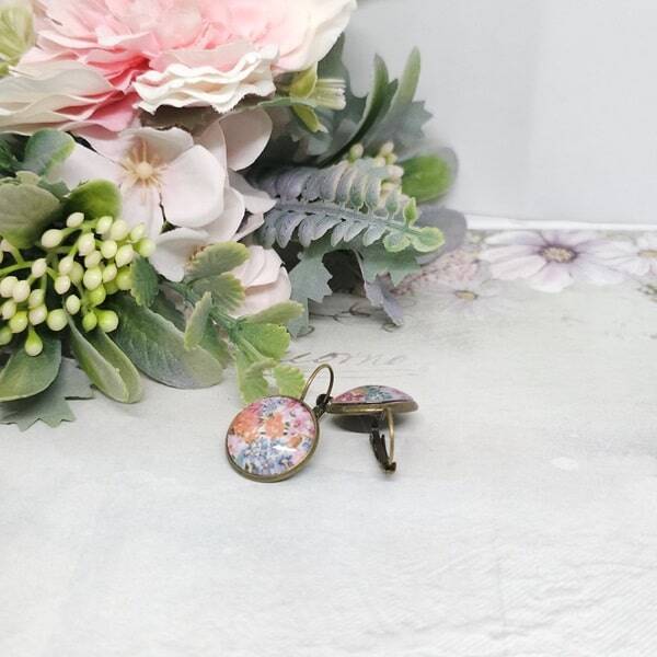 Boucles d'oreilles dormeuses avec cabochon en verre, Modèle Bucolique