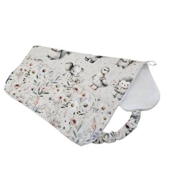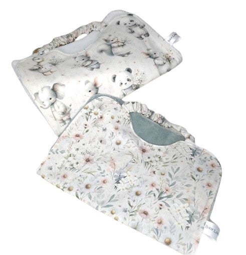 Grand bavoir, Serviette à élastique, Coton et éponge, Modèle Bouquets printaniers