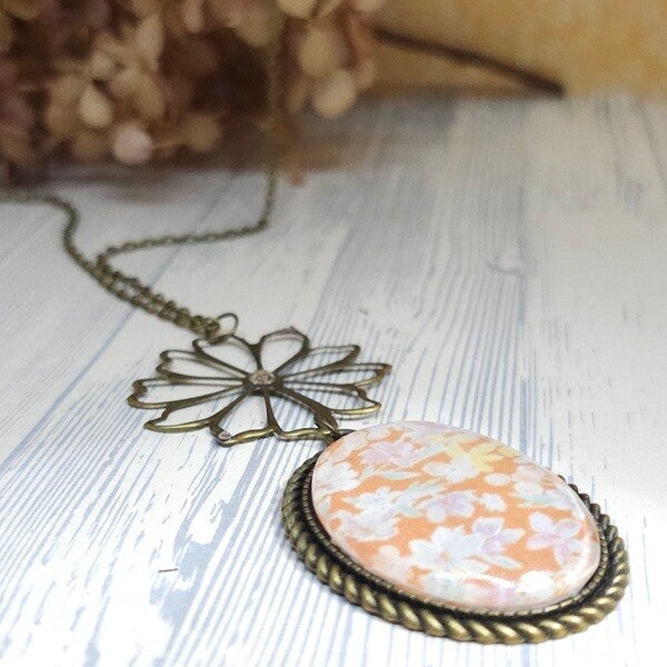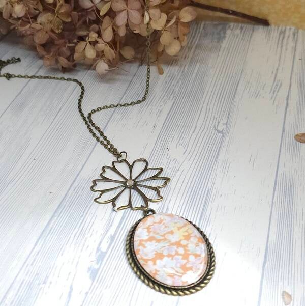 Sautoir avec cabochon en verre, Forme ovale, Modèle Fleurs d'oranger