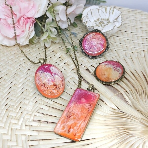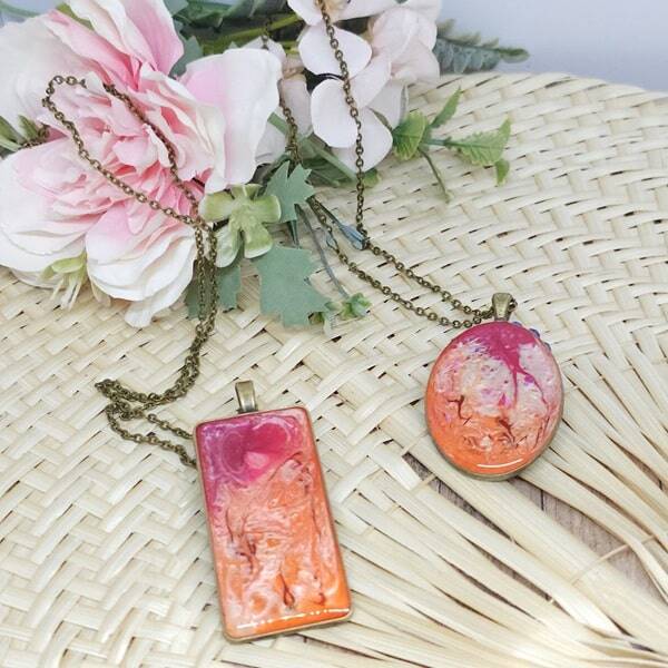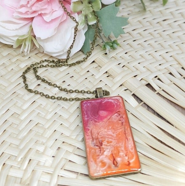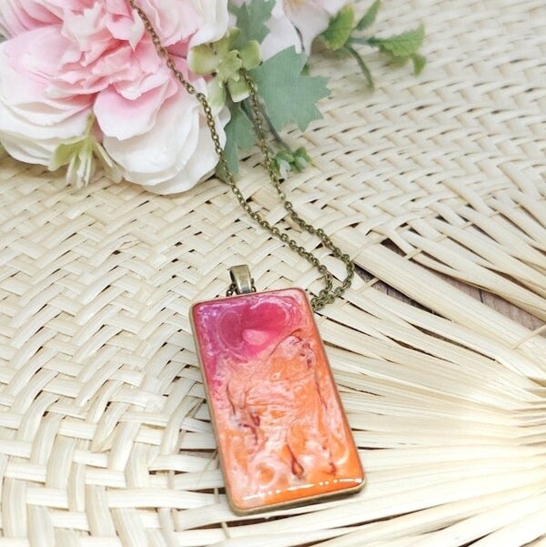 Collier en résine, Pendentif rectangulaire, Modèle Printemps