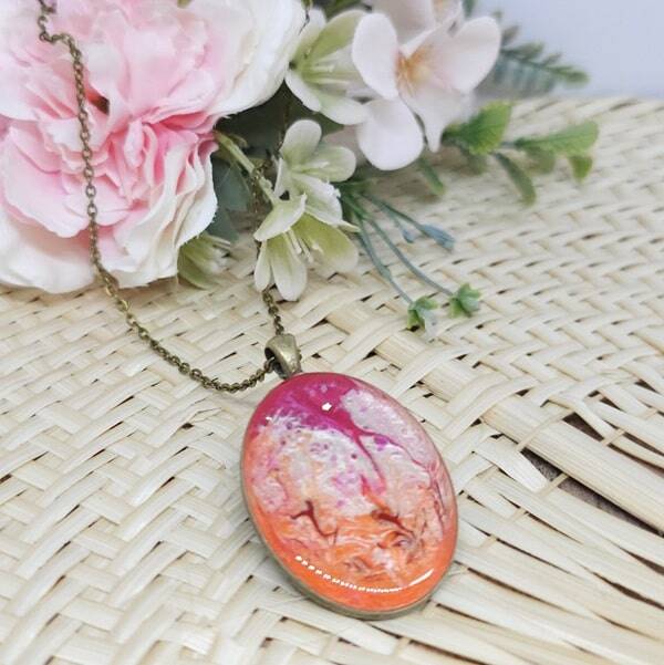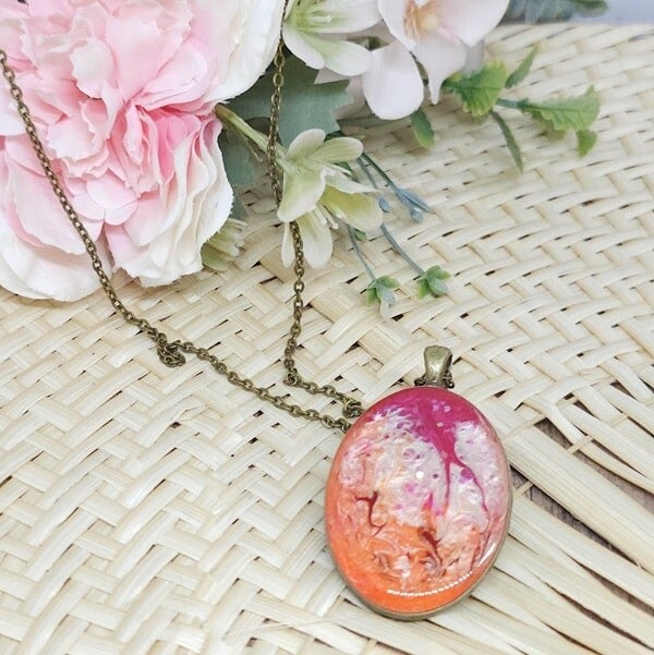 Collier en résine, Pendentif ovale, Modèle Printemps