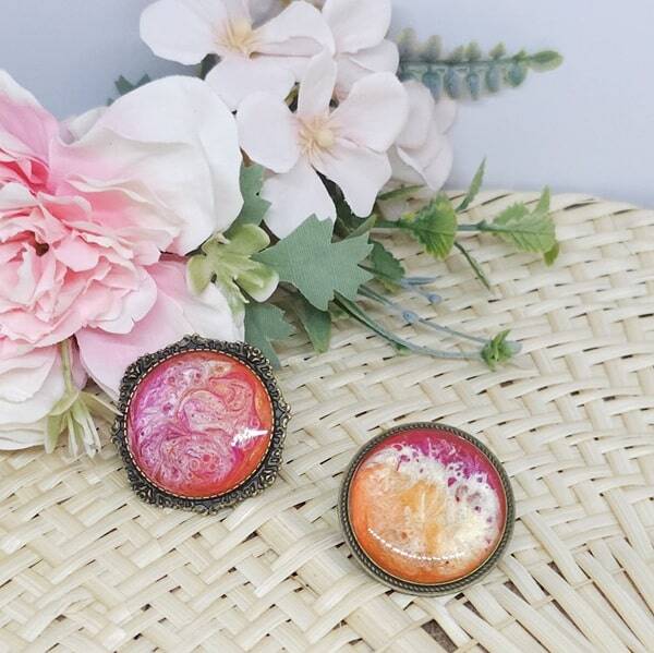 Broche résine ronde, Peinture à l'huile, Modèle Printemps