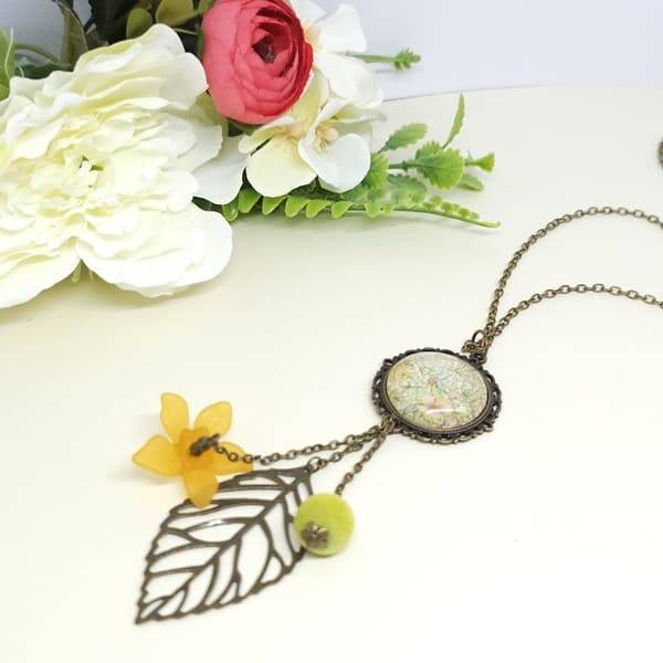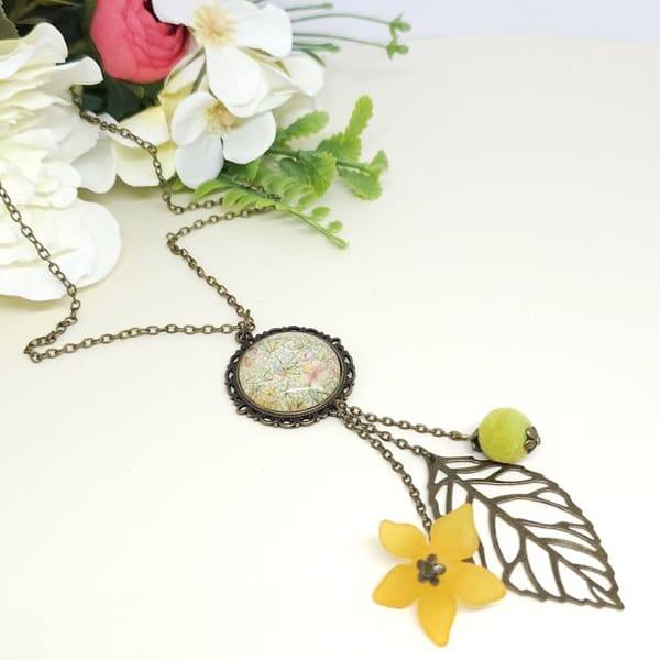 Sautoir avec cabochon en verre, Forme ronde, Modèle Orchidée