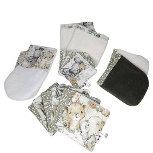 Lingettes lavables, Coton et éponge bambou, Petit et moyen format, Modèle Collection Bébés animaux