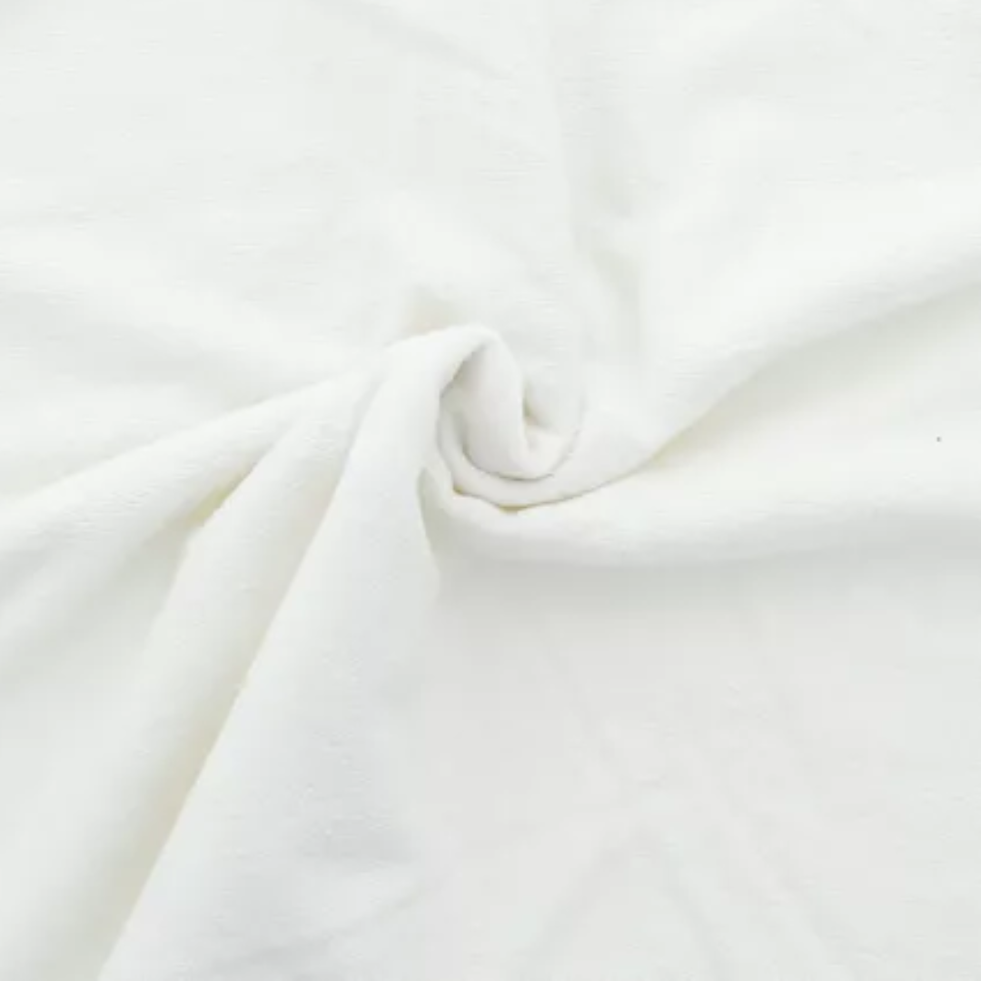 Le dos du bavoir sera réalisé avec un tissu éponge bambou de couleur blanche.