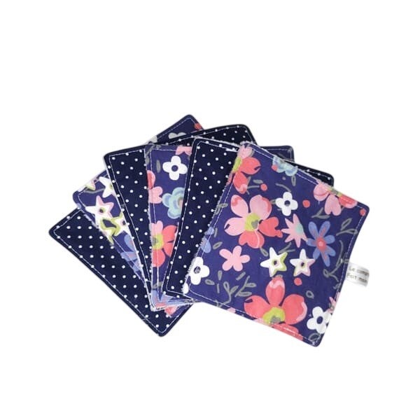 Lingettes lavables, Coton et éponge bambou, Moyen format, Modèle Grandes fleurs