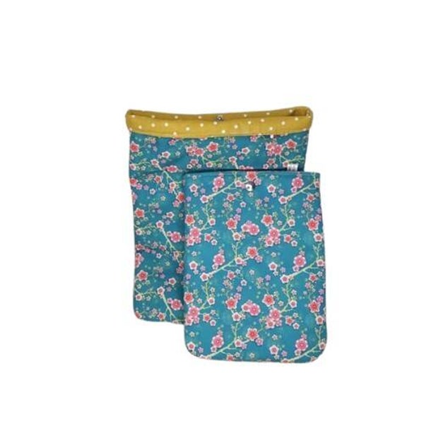 Nos pochettes à livre sont réalisés avec de jolis tissus imprimés en coton et doublées avec un molleton et fermées par un bouton pression.